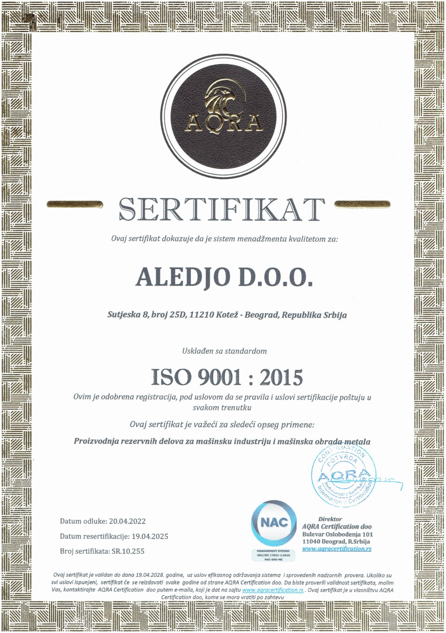 We are certified according to ISO 9001:2015, demonstrating our commitment to the highest standards of quality, precision, and safety.